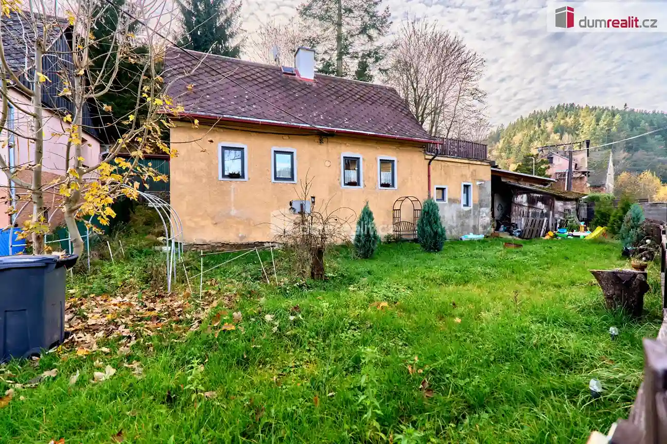 Za domem se nachází udržovaná zahrada, která je ideální pro odpočinek, rodinné posezení nebo zahradničení. Součástí pozemku je také kůlna na dřevo a prostorná garáž s přímým vstupem do domu, což poskytuje praktické zázemí pro každodenní život.